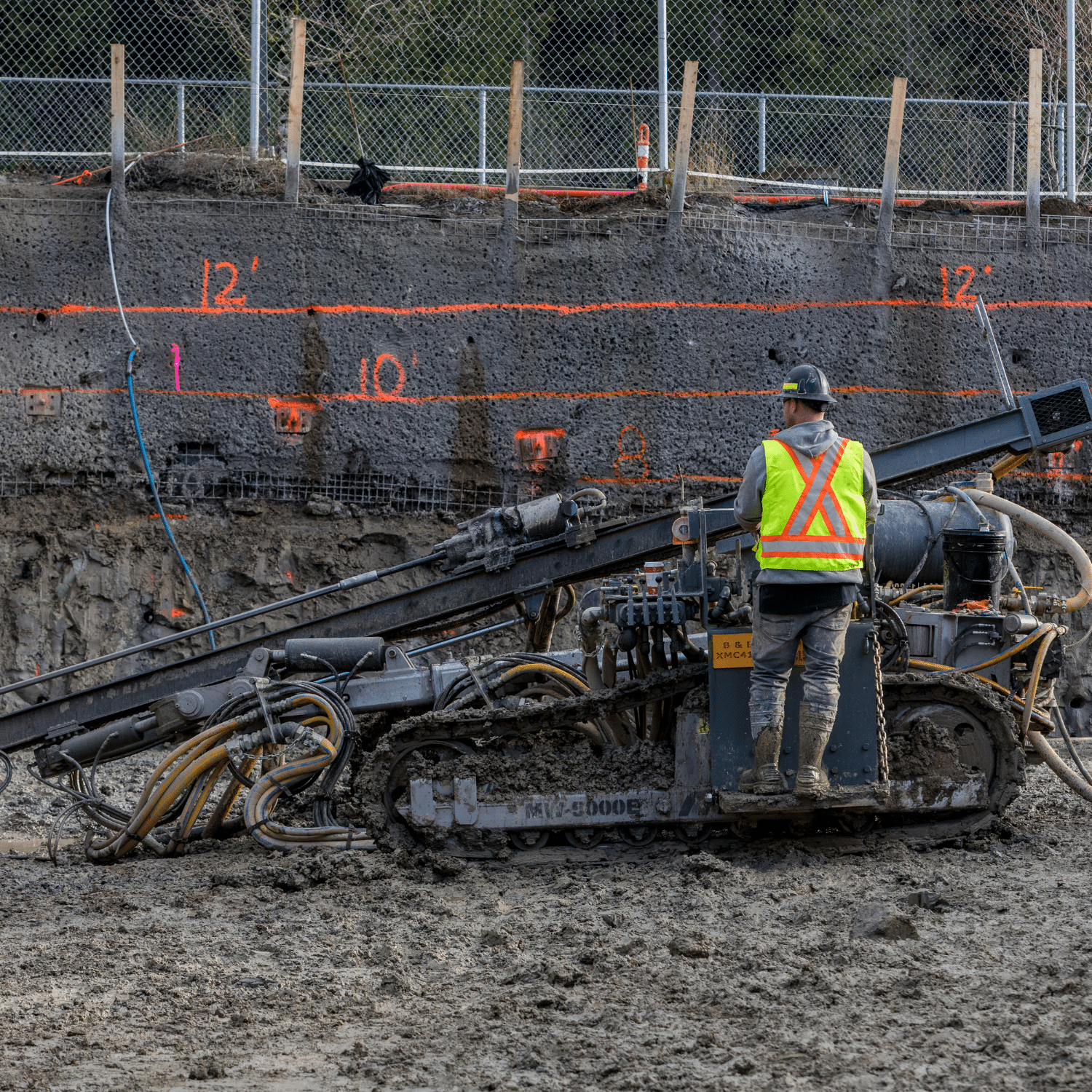 B&B is equipped with a dedicated team of drillers, nozzlemen, and skilled labourers ready to handle all your shotcrete needs. Our shotcrete crews specialize in applying high-quality, reinforced concrete to provide durable, structural ground support for temporary and permanent shoring systems. We follow strict quality control measures to ensure every application meets engineering specifications and project standards.