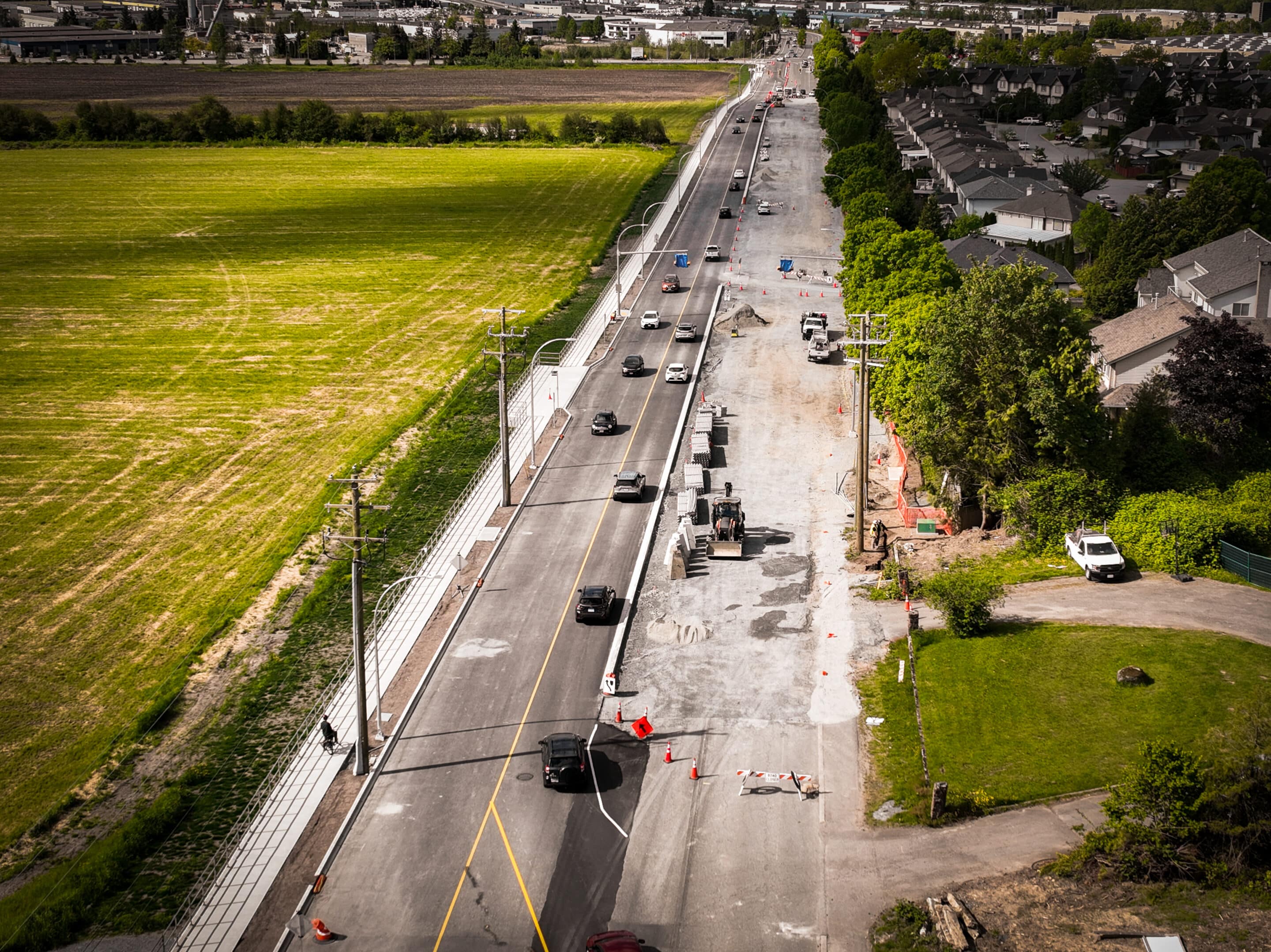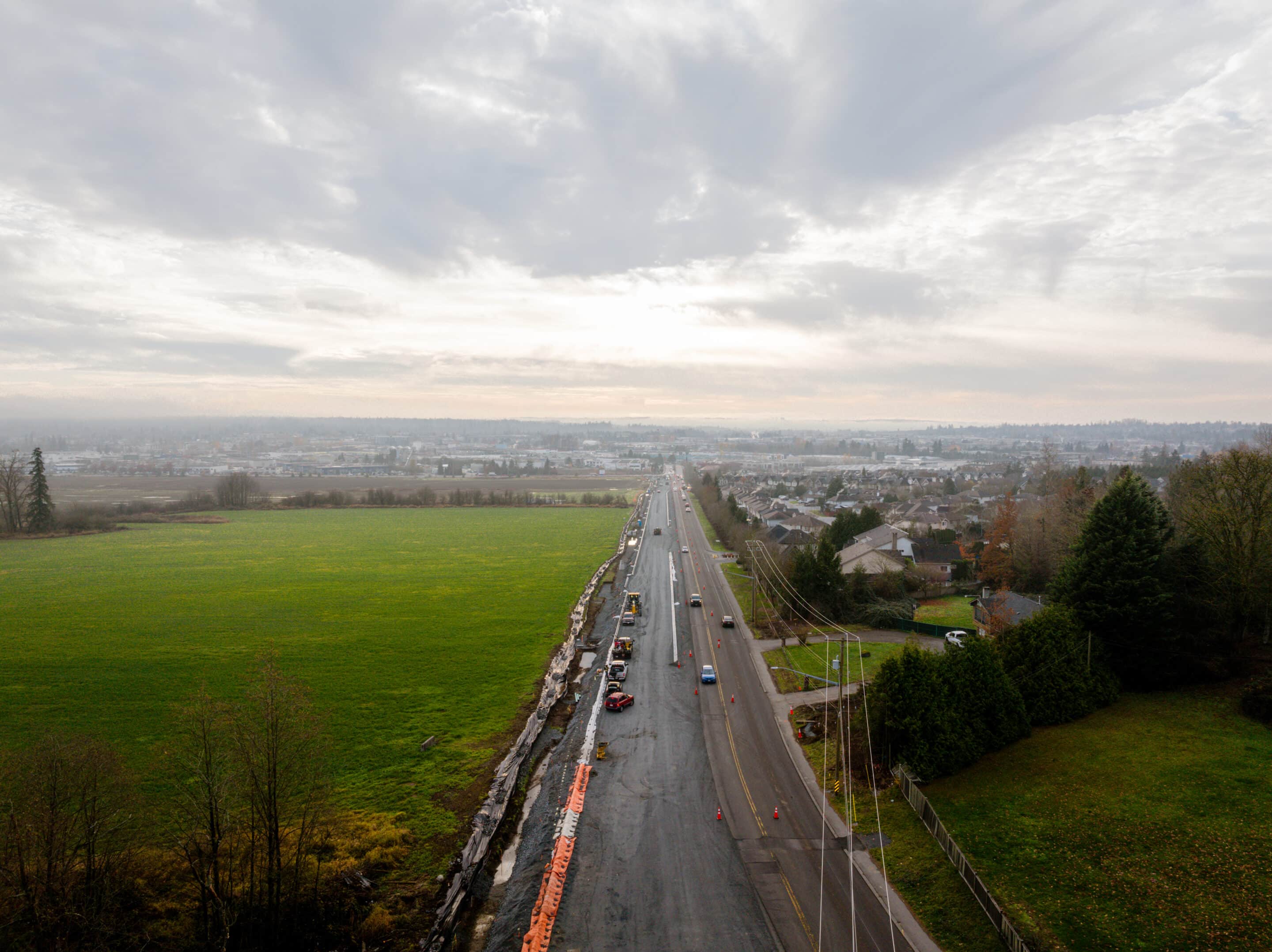 The scope also involved significant underground utility work, including new watermain, storm, and sanitary infrastructure, as well as roadworks such as pavement marking improvements along 72 Avenue. This large-scale project improved transportation capacity, safety, and servicing for a growing area of Langley.